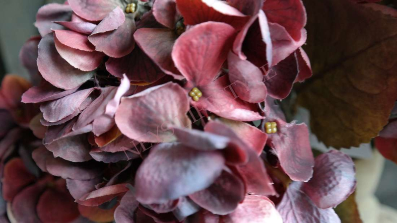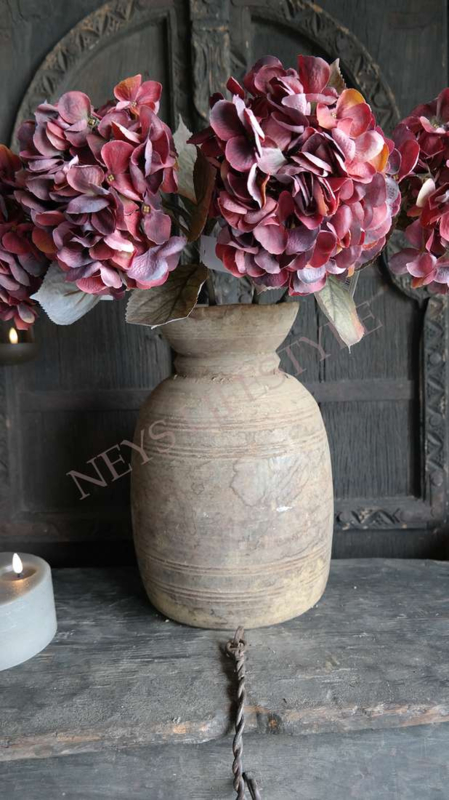 Zeer mooie zijden hortensia bloem in een warme gemeleerde bordeaux rode & paarse kleur. Zet er een paar in een mooie pot en klaar ben je! Of combineer ze met de andere bloemen uit deze lijn!