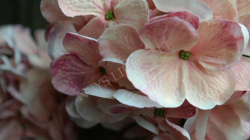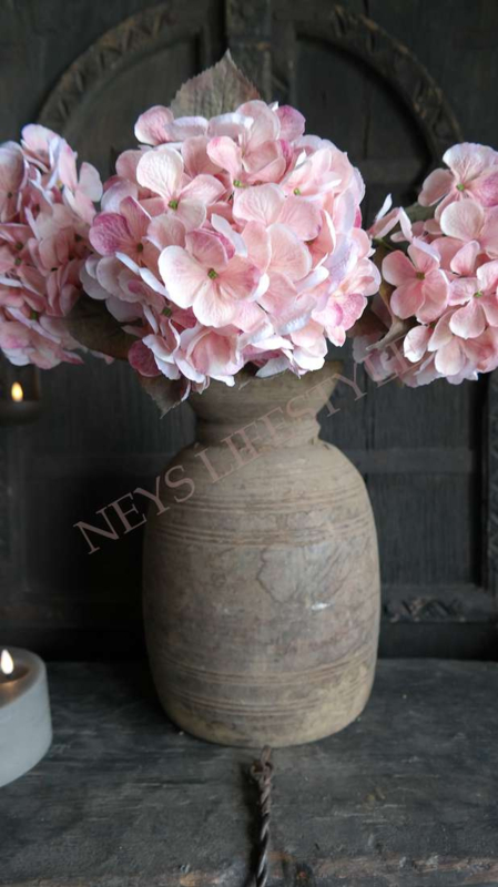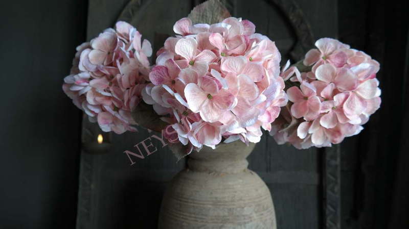 Zeer mooie zijden hortensia bloem in een warme gemeleerde zacht roze kleur. Zet er een paar in een mooie pot en klaar ben je! Of combineer ze met de andere bloemen uit deze lijn!