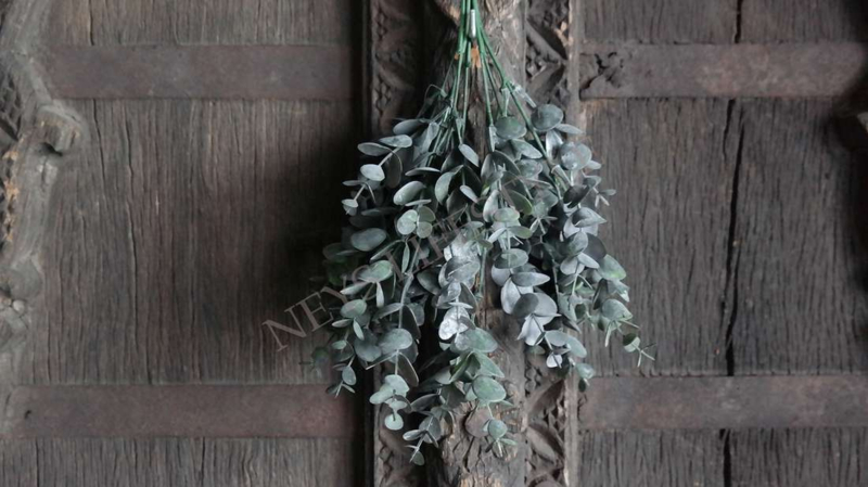 Bosje namaak eucaluptus in een mooie grijs-groene kleur. Zet een paar bosjes bij elkaar in een pot of combineer het bosje in een toefje, boeket bijvoorbeeld.