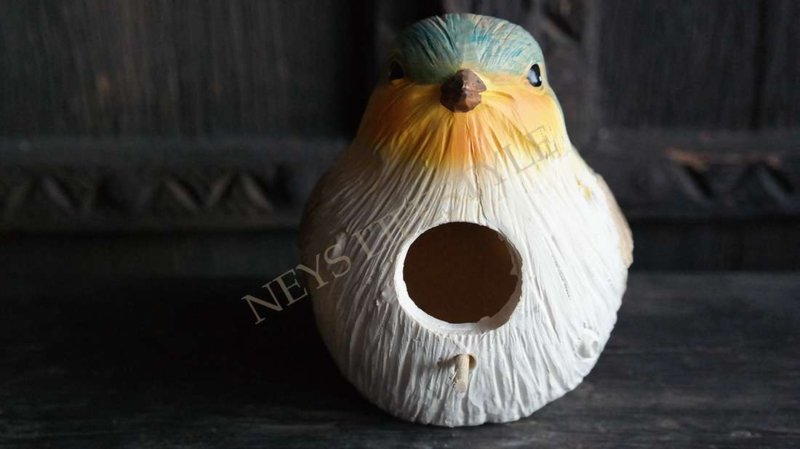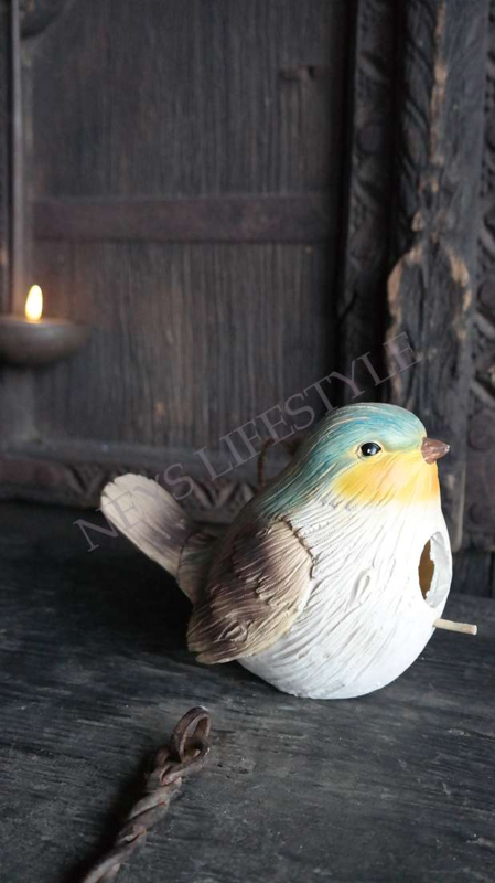 Leuke vogelhanger/huisje in de kleur en beige & créme. Gemaakt van polystone.