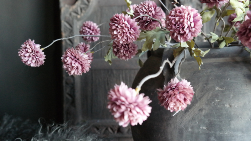 Prachtige Dahlia kunst bloem met 5 bloemen aan 1 steel in een warme oud roze kleur! Combineer ze met de cappuccino kleur & namaak takjes bijvoorbeeld. Een paar stelen in een oude pot of kruik is ook al prachtig.