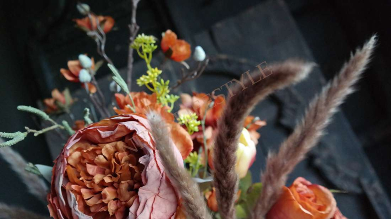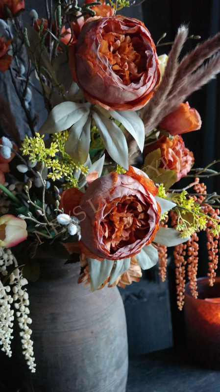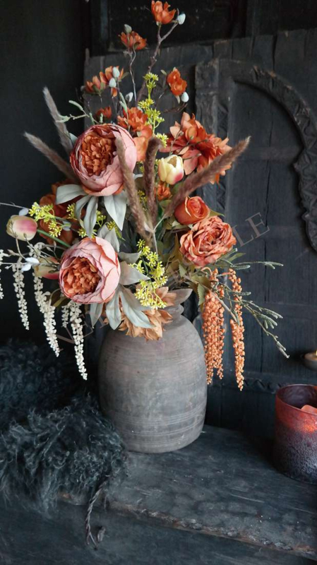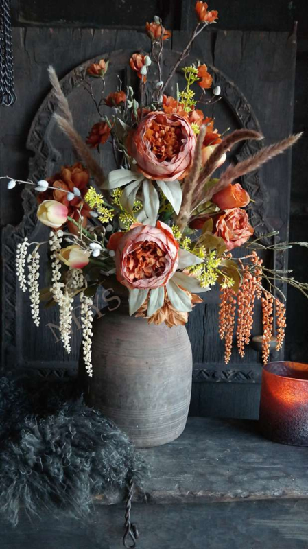 Prachtig groot kant en klaar boeket met diveren soorten zijden bloemen & takken.