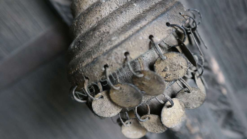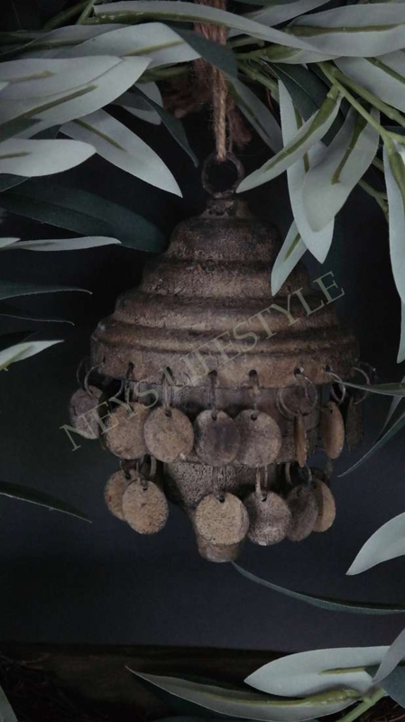 Stoere verweerde hanger in een bruine roest kleur gemaakt van metaal met muntjes eraan. Mooi om op te hangen in de Paastakken maar ook om neer te leggen ter decoratie of om te verwerken in een toef of krans bijvoorbeeld!