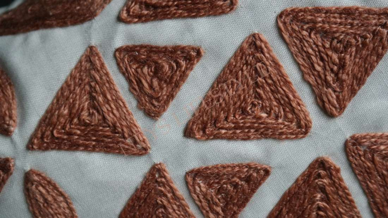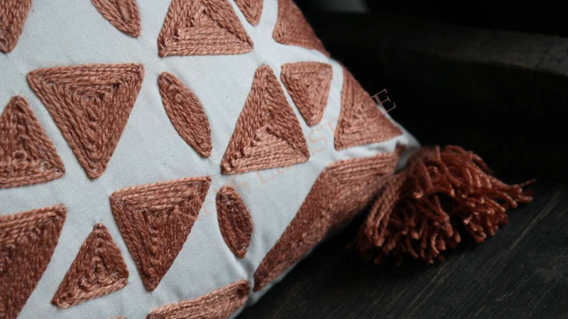 Luxe langwerpig kussen in een polyster stof met een geborduurd patroon in een terracotta kleur. De achterzijde is niet bedekt met het patroon. Combineer het kussen met het vierkante kussen uit deze lijn. Mooi op de bank, fauteuil, loungeset op bed bijvoorbeeld. Er zit een rits in.