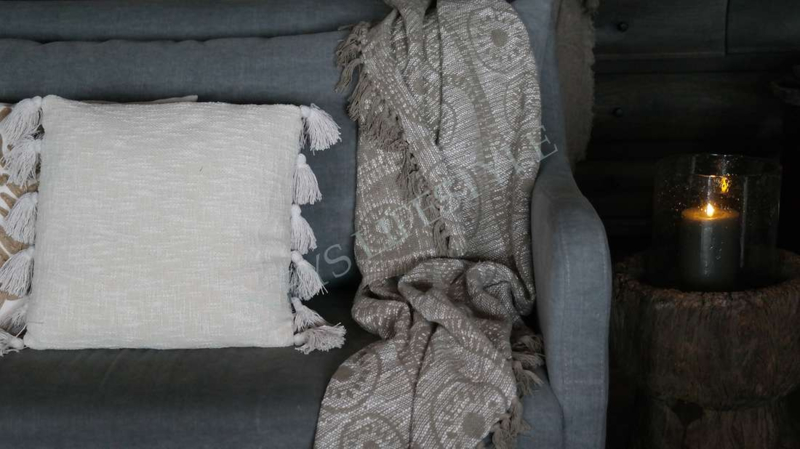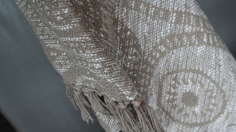 Mooi landelijk plaid van 100% polyster in de warme kleur taupe-bruin. Mooi voor op de bank, fauteuil of ter decoratie aan een kapstok of ladder bijvoorbeeld.