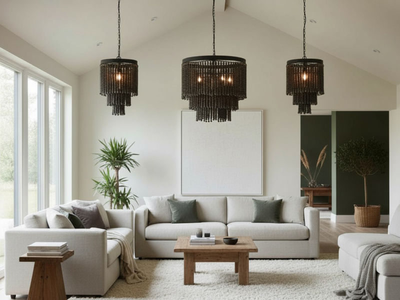 Mooie sobere & eigentijdse hanglamp met handgeregen ronde kralen in de kleur verweerd donkergrijs. De lamp bestaat uit 3 lagen en incl fitting, plafondkapje & ketting.