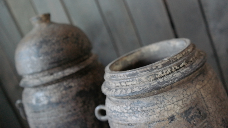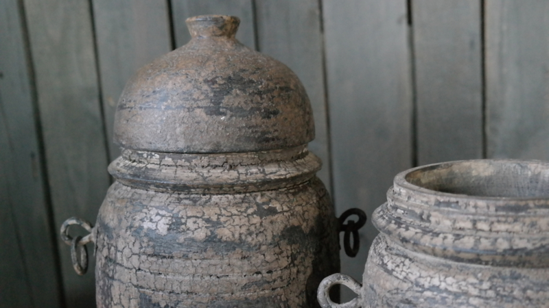 Elke pot is anders qua bewerking zo bevatten sommige een oog of ketting ernaan bijvoorbeeld.