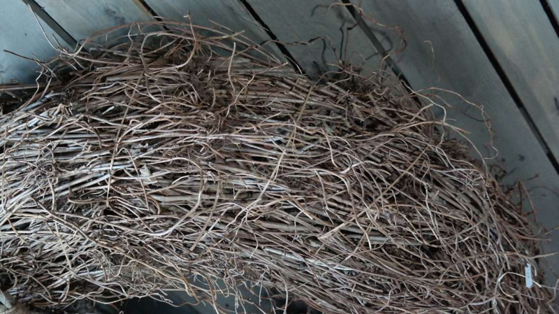 Grote & dikke krans gemaakt van wortels/takken in de kleur bruin. Prachtig formaat voor aan een grote wand of boven de bank bijvoorbeeld.