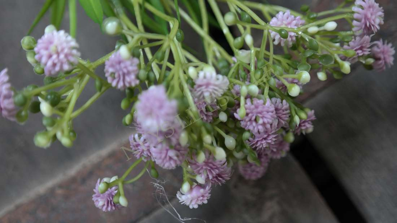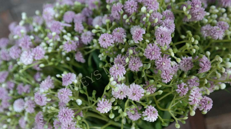 Landelijk namaak bosje gipskruid in het paars met groen blad. 1 bosje bestaat uit 5 stengels met blad zoals op foto 4.