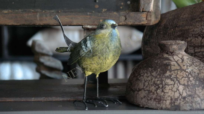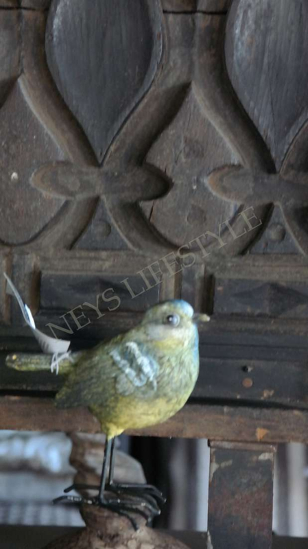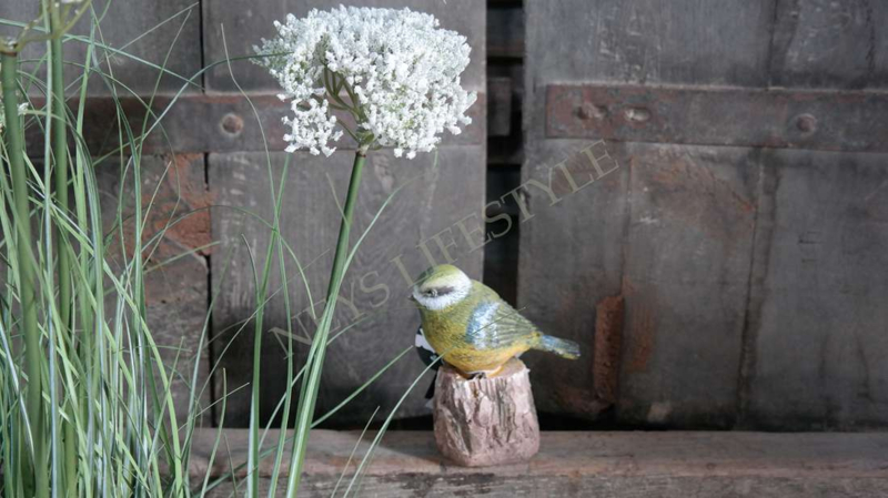 Leuke decoratieve vogel/pimpelmees op pootjes in de kleur geel-blauw. Gemaakt van polystone.