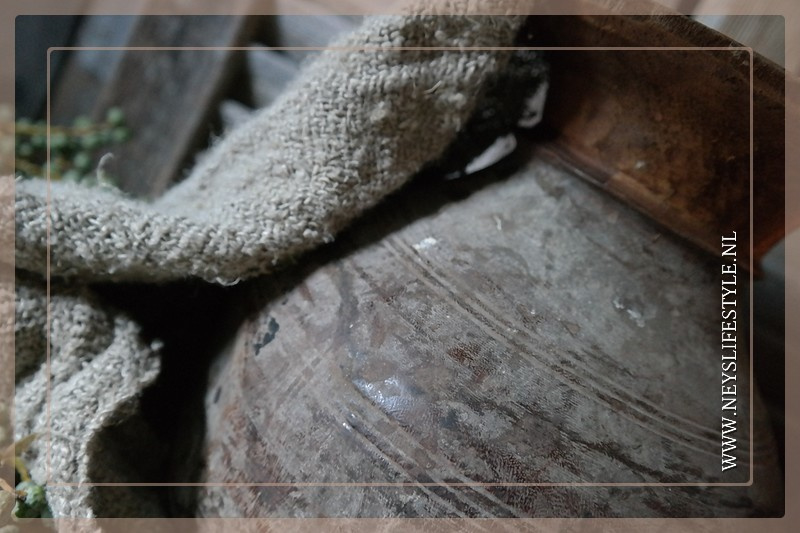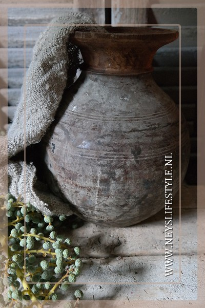 De kruik oud & gebruikt en bevat daardoor gebruikerssporen. Ook kan hij iets afwijken qua kleur, vorm en afmeting aangezien ze allemaal oud & uniek zijn.