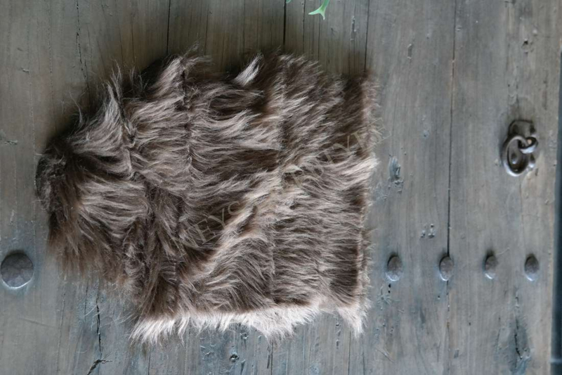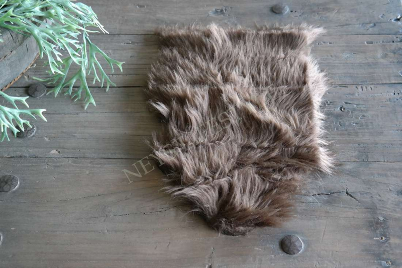 Mooi klein bruin kleurig immitatie vacht. Leuk ter decoratie over een krukje, bankje enz.