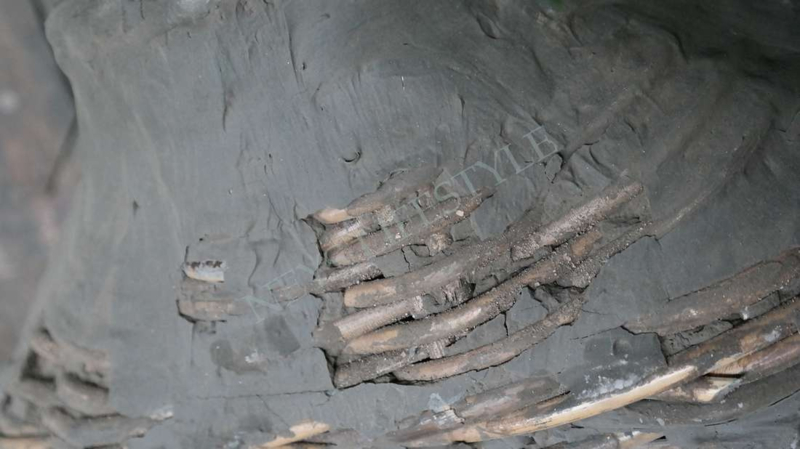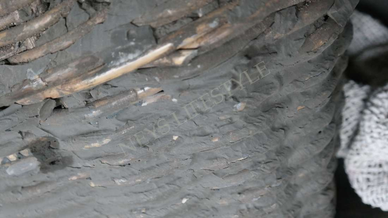 Mooie nagemaakte rieten leemmand in de warme kleur grijs/bruin.