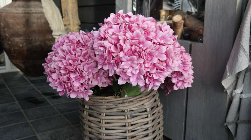 Mooie plantenmand met plastic aan de binnenzijde gemaakt van dik stevig rotan.