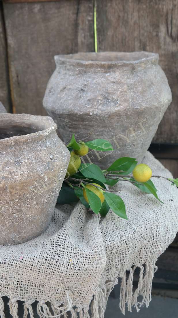 Prachtige landelijke pot/kruik gemaakt van aardewerk in een warme grijs/bruin tint. De pot is niet waterdicht.